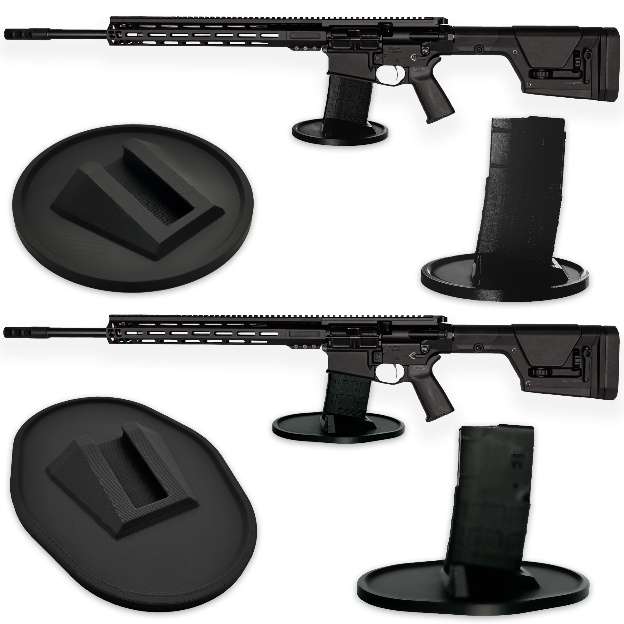 – While this display stand is designed with the Armalite AR-10 Tactical Rifle in mind, it is versatile enough to accommodate other rifles of similar size and weight. The adjustable arms and customizable design allow it to hold various types of guns, including AR-15s and other tactical rifles.