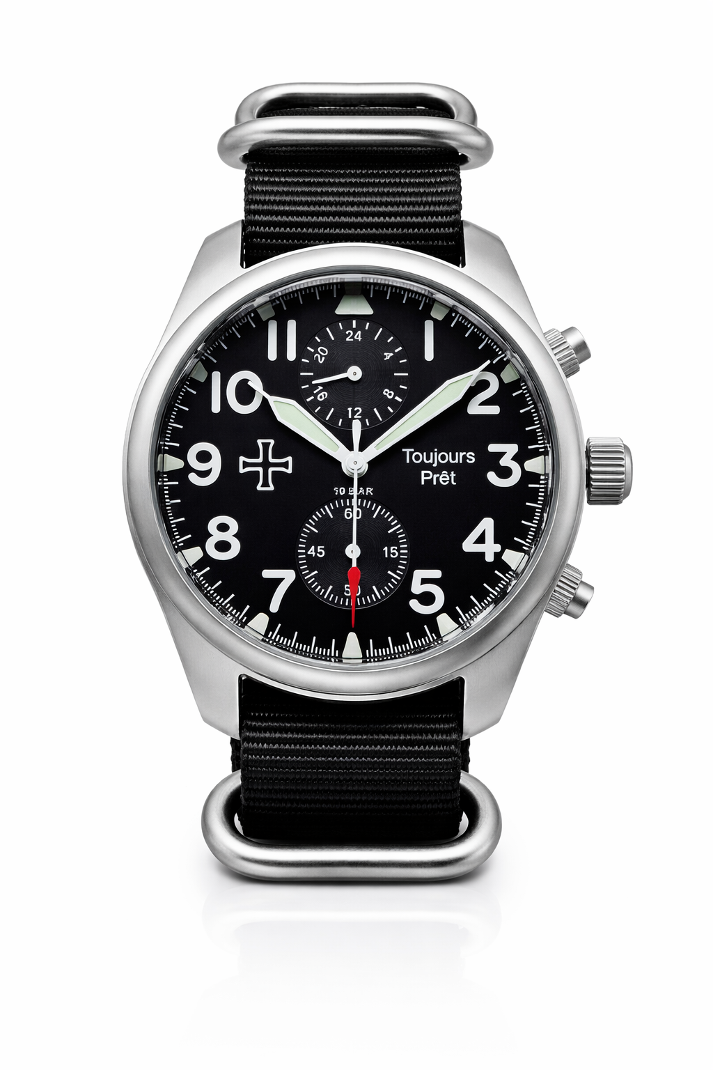 Engineered for those who live by action and adapt without hesitation, the Toujours Prêt Military Watch is a precision timepiece born from military heritage and built for modern missions. Inspired by the motto of the French 23e Léger Infantry Regiment—“Always Ready”—this watch is your steadfast ally in any environment.